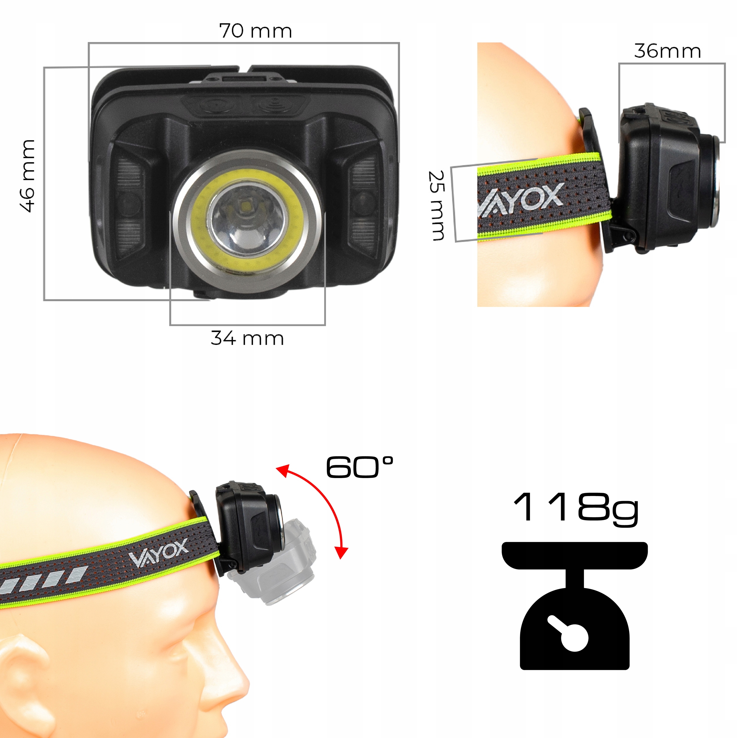 Profesjonalna latarka czołowa Vayox model VA0025 pro niezastąpione narzędzie dla wymagających użytkowników. Zaprojektowana z myślą o wielofunkcyjności i intensywnym użytkowaniu, ta latarka czołowa łączy w sobie zaawansowaną technologię i wyjątkową trwałość, zapewniając niezawodne oświetlenie w każdych okolicznościach.