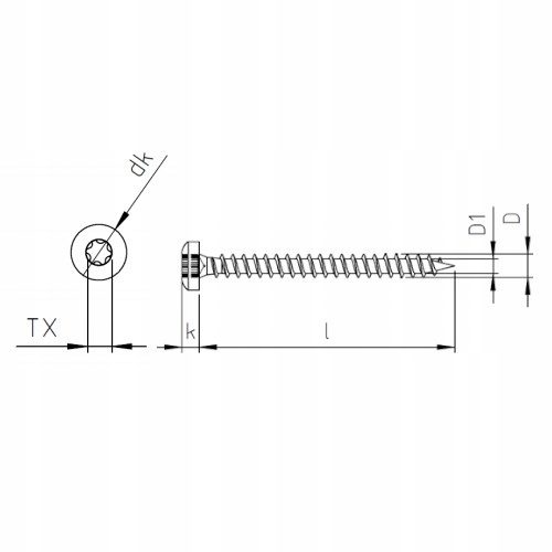 Wkręt do drewna łeb soczewkowy na Torx nierdzewny