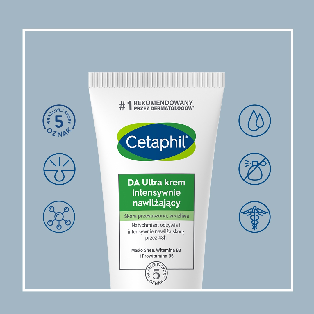 Cetaphil DA Ultra to preparat предназначен для постоянно сухой и чувствительной кожи. Доказано увлажняющее действие крема Цетафил ощущается сразу после нанесения на кожу и часов.