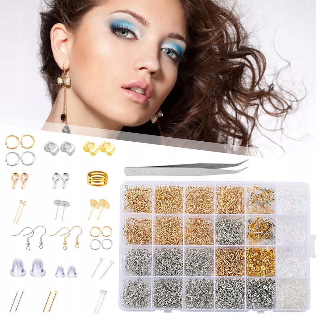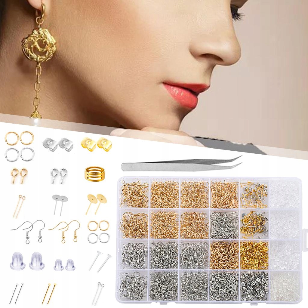 2682 Szt. Zestaw Do Robienia Kolczyków Haczyki Do Wyrobu Biżuterii Srebro Złoto