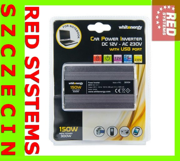 Nazwa produktu Whitenergy Przetwornica AC/DC 12V (samochód) na 230V, 150W mocy złącze USB, mini