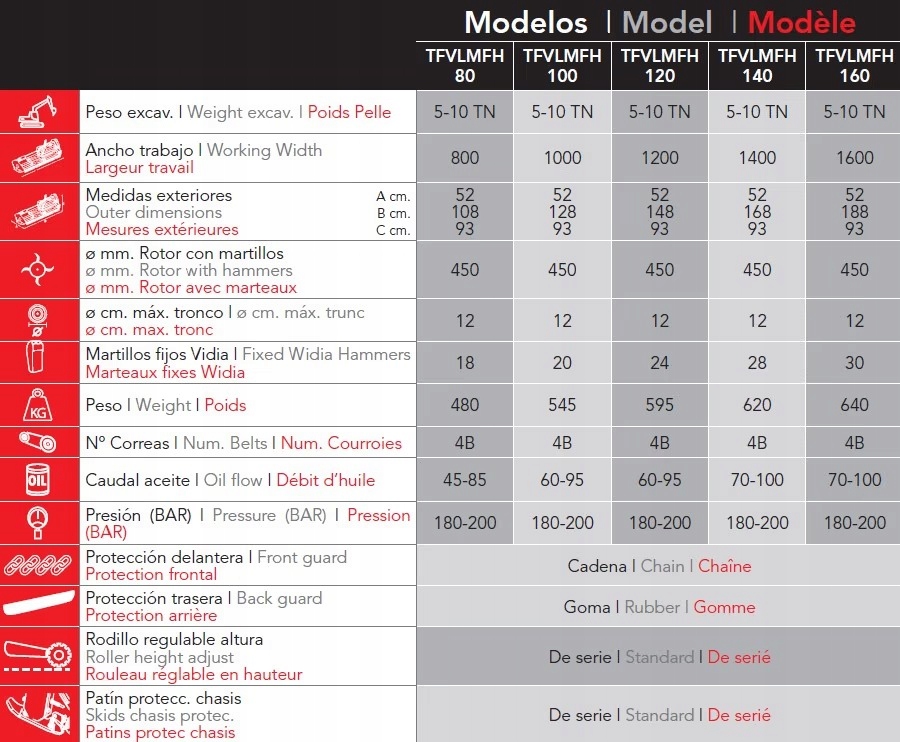 Dla tego modelu dostępne są również modyfikacje dla minikoparek o szerokości roboczej 80, 100, 140 i 160 cm.