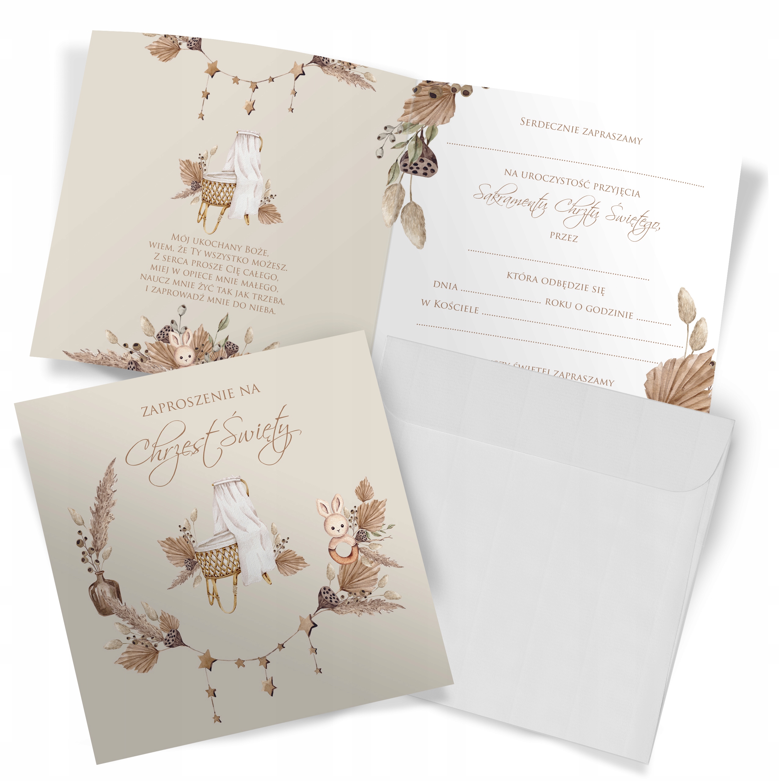Do każdego zaproszenia dołączona jest biała koperta, która dopełnia całość.