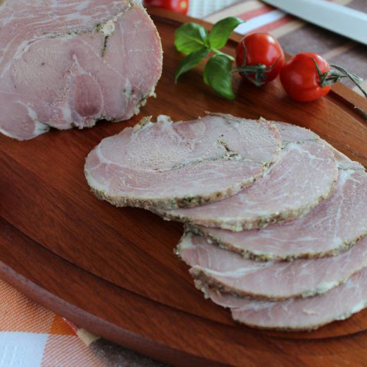 Mięso opłukać i starannie wytrzeć ręcznikiem papierowym. Wszystkie składniki dokładnie mieszamy, ugniatamy i zwijamy z mięsem, następnie wkładamy do lodówki na minimum 2 doby. Po tym czasie do szynkowaru wkładamy woreczek foliowy (jest w zestawie razem z szynkowarem) i do środka ciasno układamy mięso, staramy się nie pozostawiać w środku powietrza. Kiedy mięso jest w środku, zawijamy końcówkę woreczka, nakładamy metalowy przycisk i sprężynę, przykręcamy zaworek. Szynkowar wkładamy do garnka wypełnionego wodą tak aby była około 4 cm poniżej górnej krawędzi szynkowara i podgrzewamy do temperatury 80-90°C. W tej temperaturze szynkowar utrzymywać przez 2 godziny. Po dwóch godzinach wkładamy szynkowar do zimnej wody w celu schłodzenia, potem jeszcze przez noc trzymamy w lodówce. Szyneczka gotowa. SMACZNEGO!