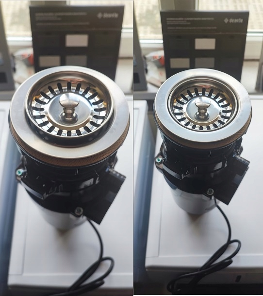 Młynek MIUI jako jedyny młynek na rynku posiada funkcję blokady odpływu. Z jego pomocą jesteśmy w stanie zablokować odpływ i napełnić komorę zlewu. Podczas gdy inni producenci używają zwykłej silikonowej wkładki. Zdjęcie powyżej prezentuję po lewej stronie odpływ otwarty, natomiast po prawej odpływ zamknięty