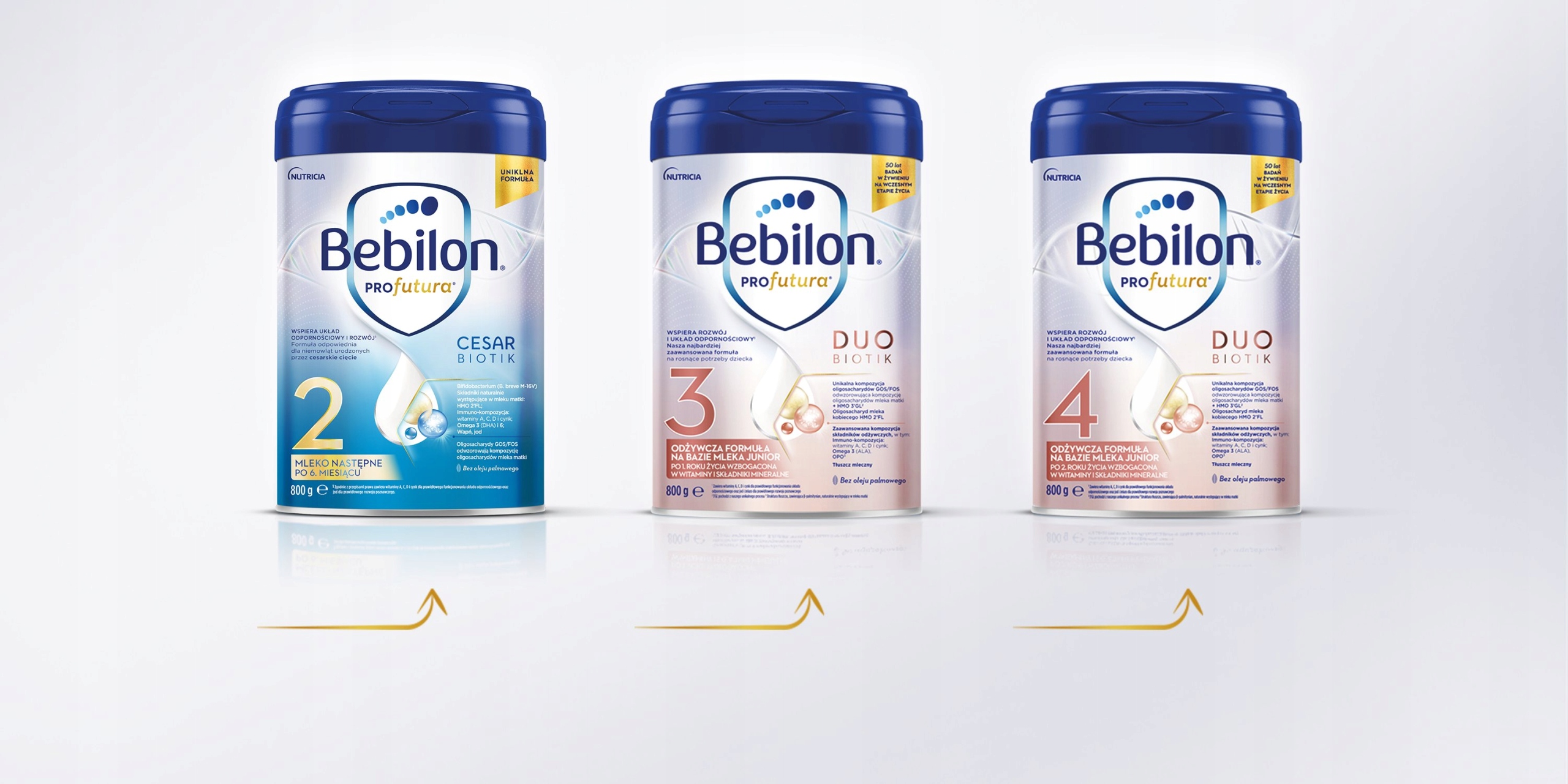 Produkty Bebilon PROfutura CESARBIOTIK 1,2, odpowiednie dla niemowląt urodzonych przez cesarskie cięcie dopasowane są do wieku i potrzeb Twojego dziecka. Gdy Twoje dziecko skończy rok wspieraj jego rozwój i układ odpornościowy z naszą najbardziej zaawansowaną formułą Bebilon PROfutura DUOBIOTIK 3 i 4 (5).