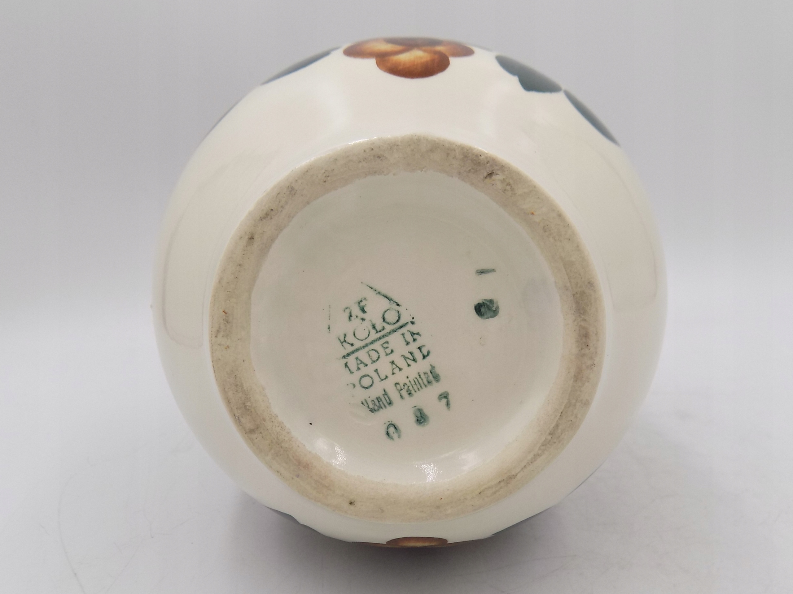 Fajansowy wazon z Koła z lat 70/80-tych. Sygnowany. Ręcznie malowany. Wymiary; wys. 12 x 22 cm. Ślady użytkowania