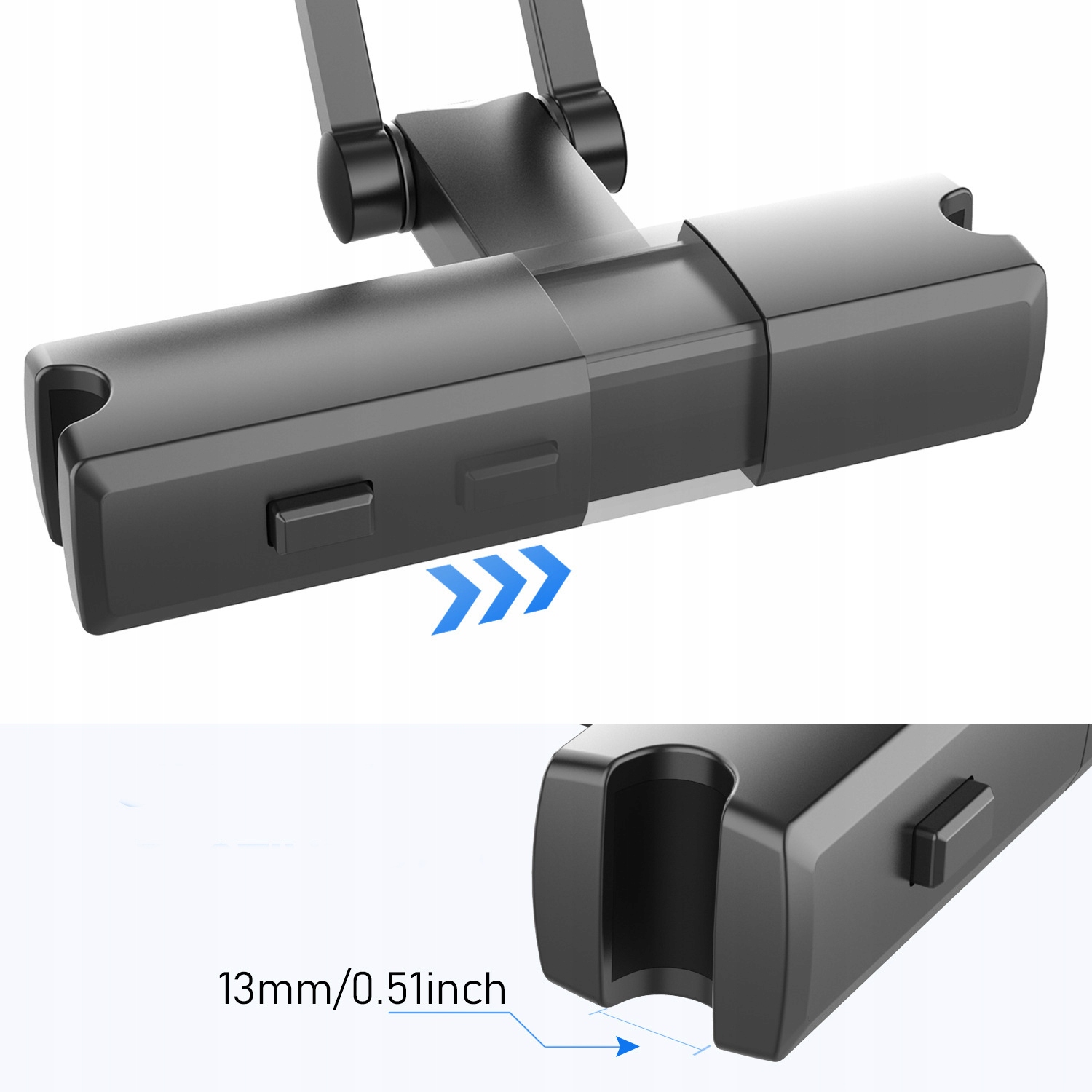 Uchwyt dostosowany do obsługi tabletu, smartfona, e-czytnika oraz pozostałych urządzeń. Konstrukcja składana pozwala do dopasowanie kąta i odległości oglądanych treści. Możliwość regulacji położenia urządzenia w pionie. Pozwala przybliżyć uchwyt z urządzeniem mobilnym do siebie, aby móc nim sterować podczas gry lub oglądania filmów. Uniwersalne mocowanie zagłówkowe - zaciski są rozsuwane dzięki czemu pasuje do każdego zagłówka.