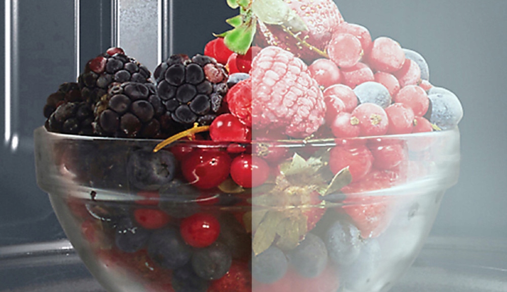 Aby żywność pozostała w idealnym stanie po rozmrożeniu, ważne jest, aby rozmrażać ją szybko i skutecznie. Dzięki funkcji rozmrażania w kuchence mikrofalowej ciepło dociera do potrawy równomiernie. Nie ma konieczności ręcznego zmniejszania mocy.