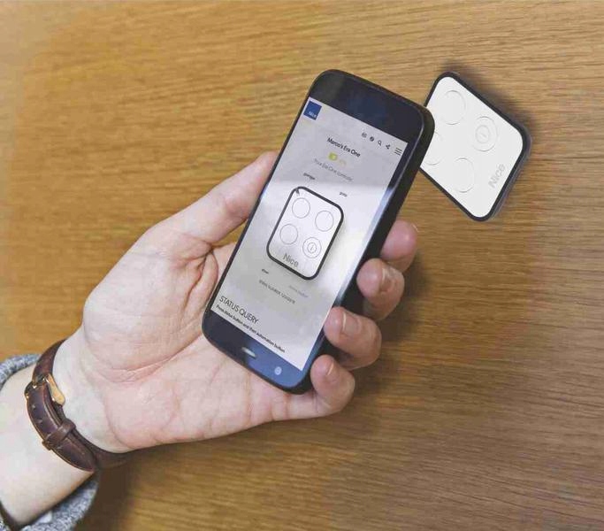 Когда вы кладете смартфон рядом с пультом дистанционного управления Era One BiDi, приложение от Nice, позволяет, например, бесконтактное считывание уровня заряда батарея пульта дистанционного управления.