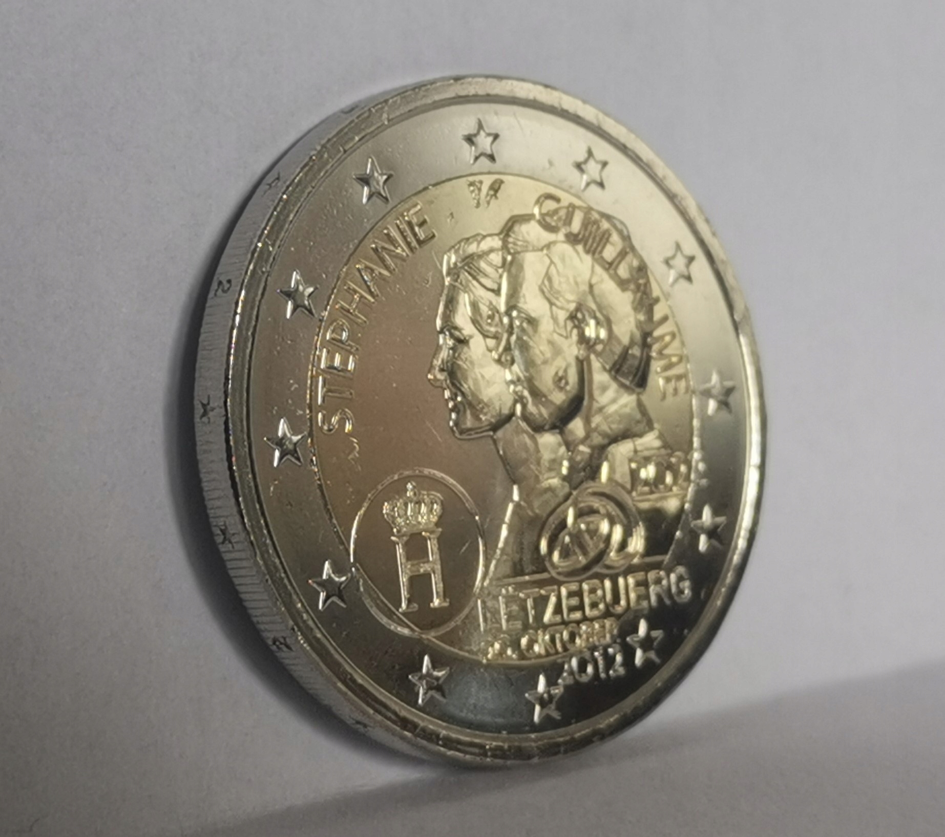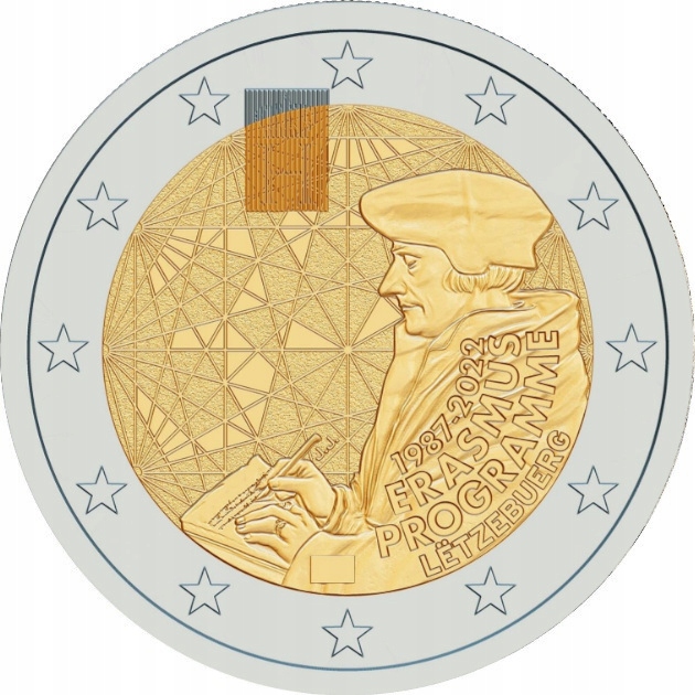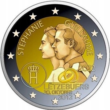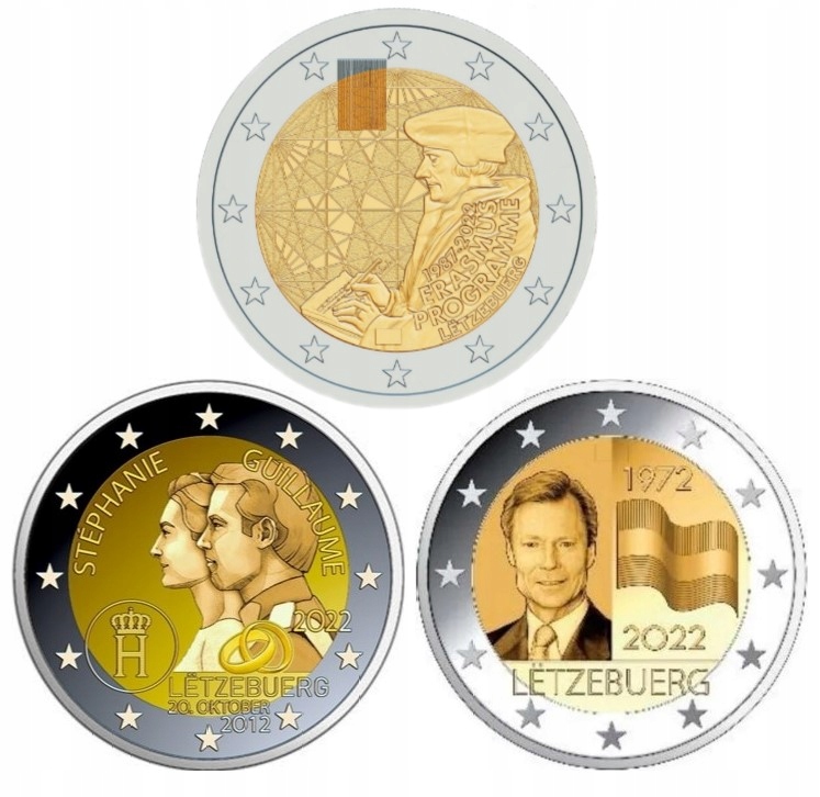 Motyw 3 monet w zestawie: 50-ta rocznica flagi Luxemburga, 35-lecie programu ERASMUS, 10-lecie ślubu Księcia Wilhelma i Księżnej Stefanii
