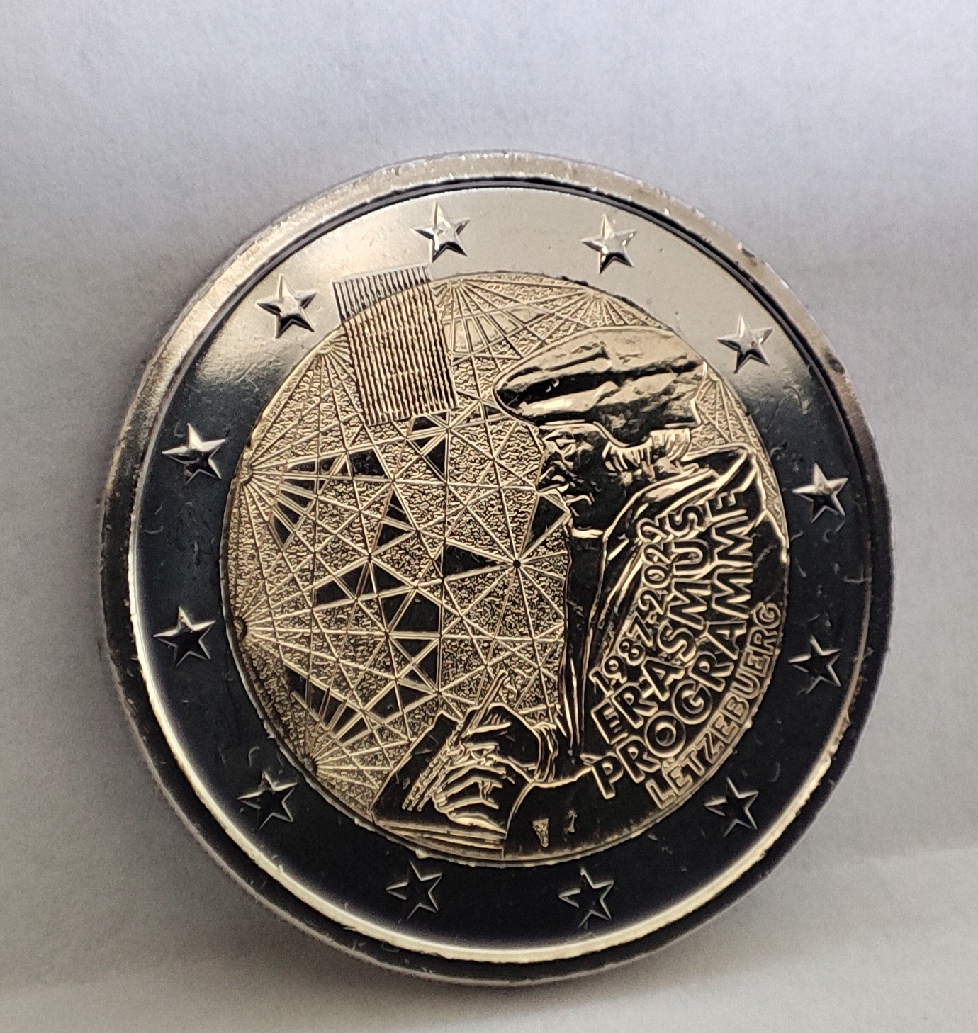 Zestaw składa się z 3 monet: 1) monety dedykowanej 50-ej rocznicy flagi Luksemburga, przedstawiającej twarz Wielkiego Księcia Henryka i flagę Luxemburga, 2) monety upamiętniającej 35-lecie programu Erasmus oraz 3) monety dedykowanej 10-ej rocznicy ślubu Wielkiego Księcia Wilhelma i Wielkiej Księżnej Stefanii.