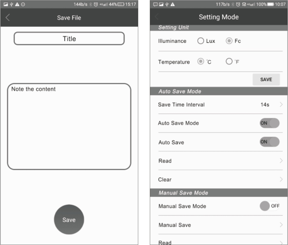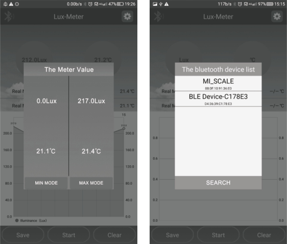 Bluetooth и приложение для Android 5.0 и выше позволяет сохранять и анализировать результаты измерений освещенность в мобильном приложении.