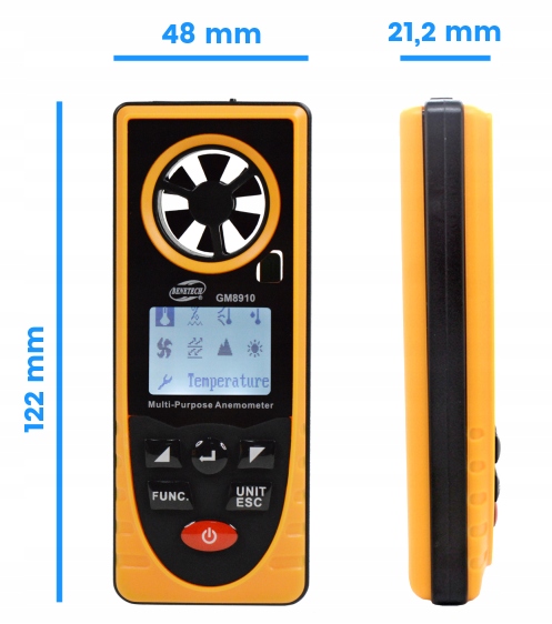 Wiatromierz wykonany jest z dobrej jakości materiałów, jest lekki i wygodny w obsłudze, a zatem można go bez problemu stosować w trudno dostępnych miejscach. Do urządzenia dołączona jest instrukcja obsługi w języku polskim oraz bateria.