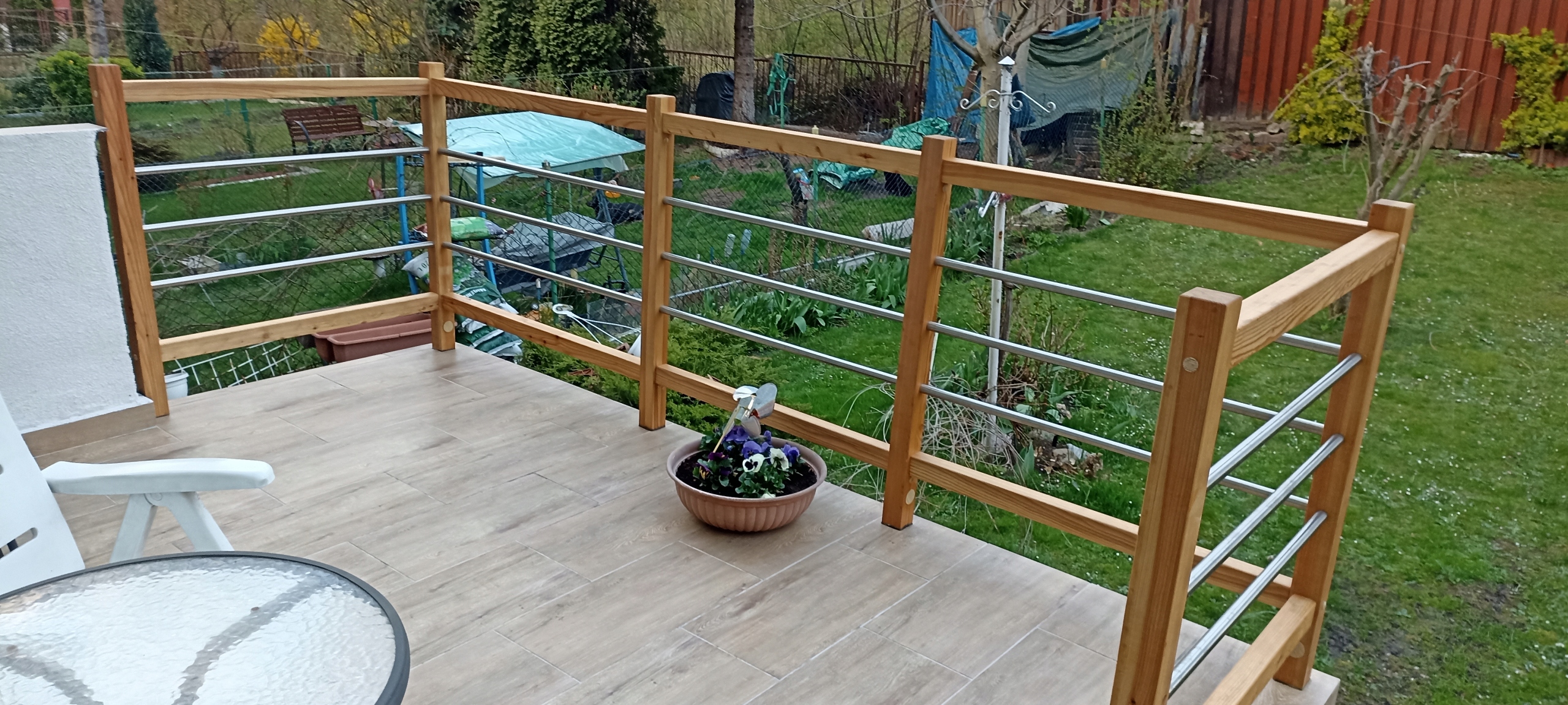 Balustrada jest wykonana z drewna litego Modrzewiowego