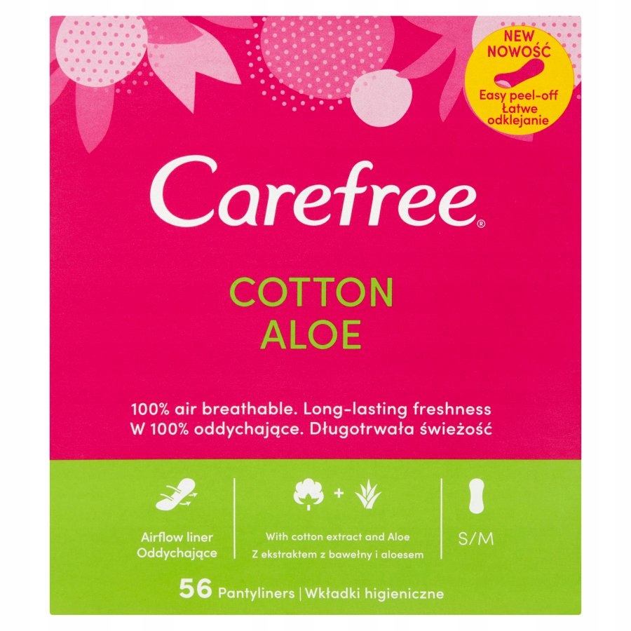 Wkładki higieniczne Carefree z ekstratem z bawełny i aloesem, zapewniają długotrwałą świeżość. Zapewniają one kontrolę nad intymnym zapachem i uczucie świeżości. Powłoczka wkładek testowana dermatologicznie.