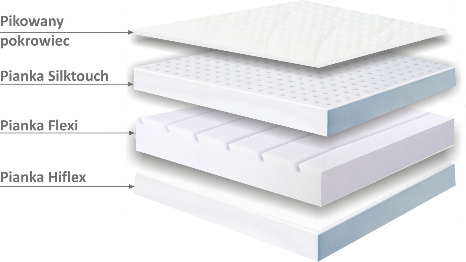 Zbudowana z milionów pęcherzyków powietrza charakteryzuje się niezwykłą elastycznością punktową, gwarantując znakomite podparcie dla kręgosłupa. Pianka wytwarzana jest z nietoksycznych materiałów oraz posiada właściwości antyalergiczne i antygrzybiczne. Wyjątkowa sprężystość pianki sprawia, że jest odporna na odkształcenia oraz bardzo wytrzymała.