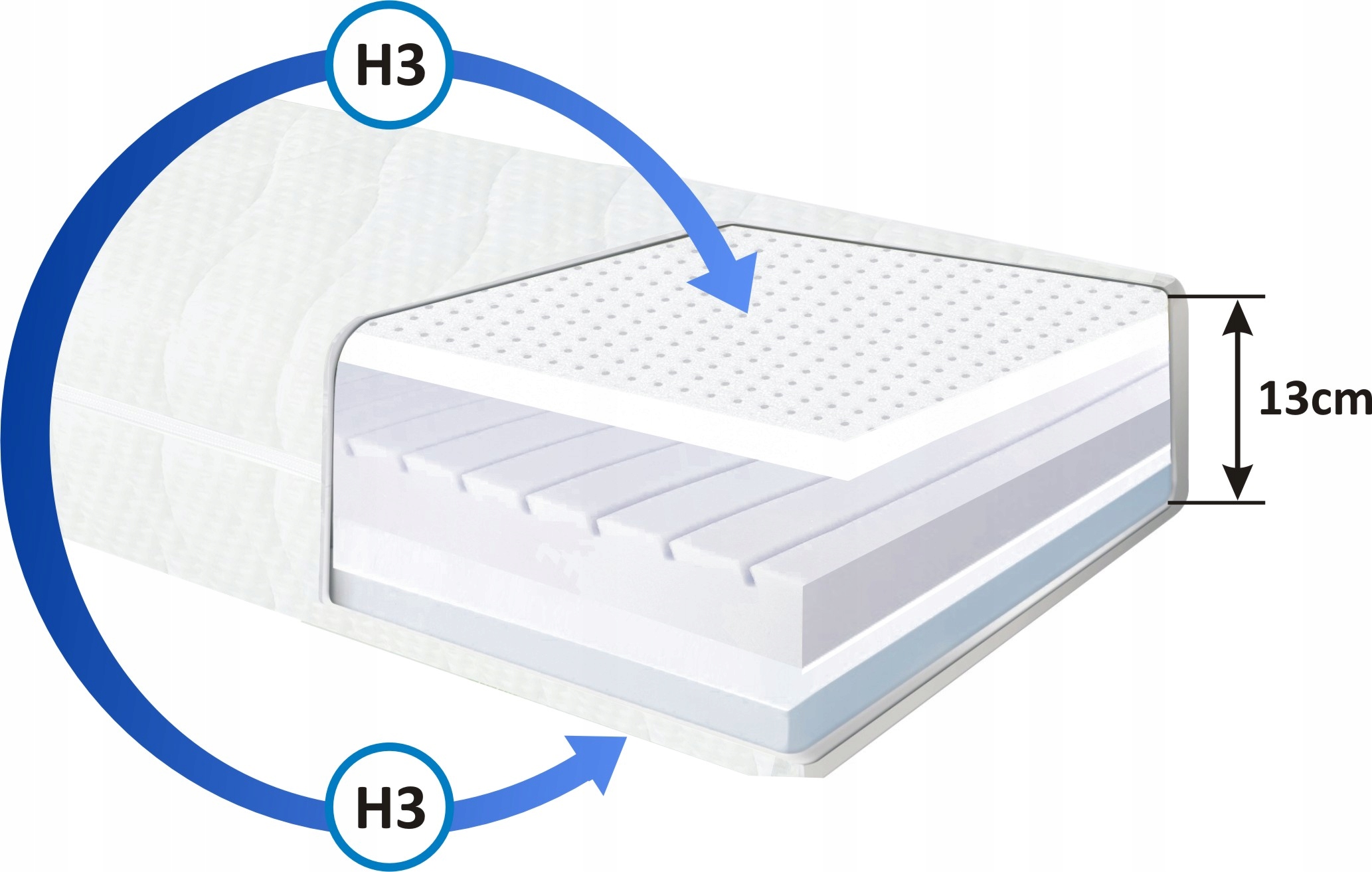 Wysokiej jakości gruby (aż 13 cm) dwustronny materac. Przeznaczony dla dzieci i młodzieży.