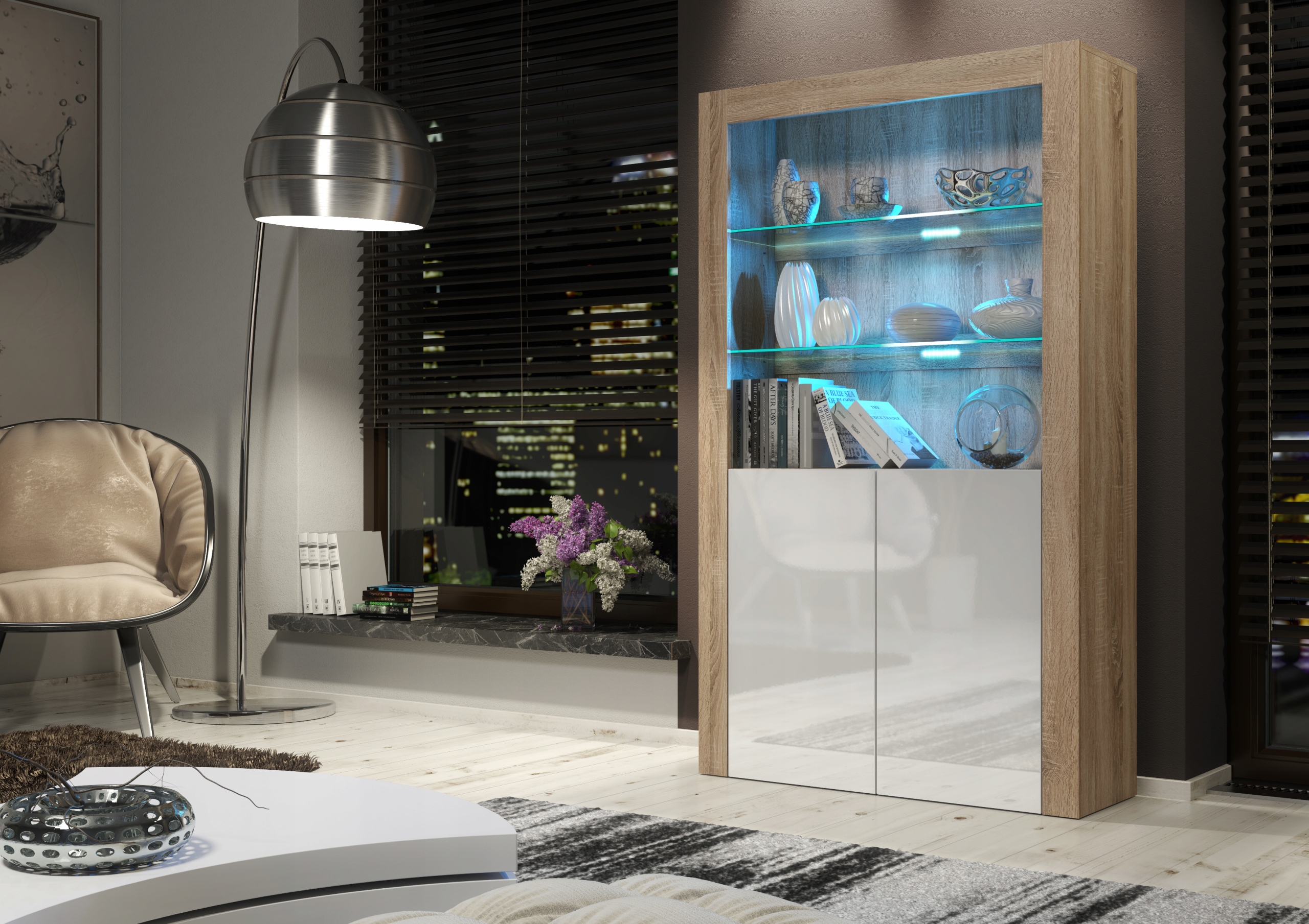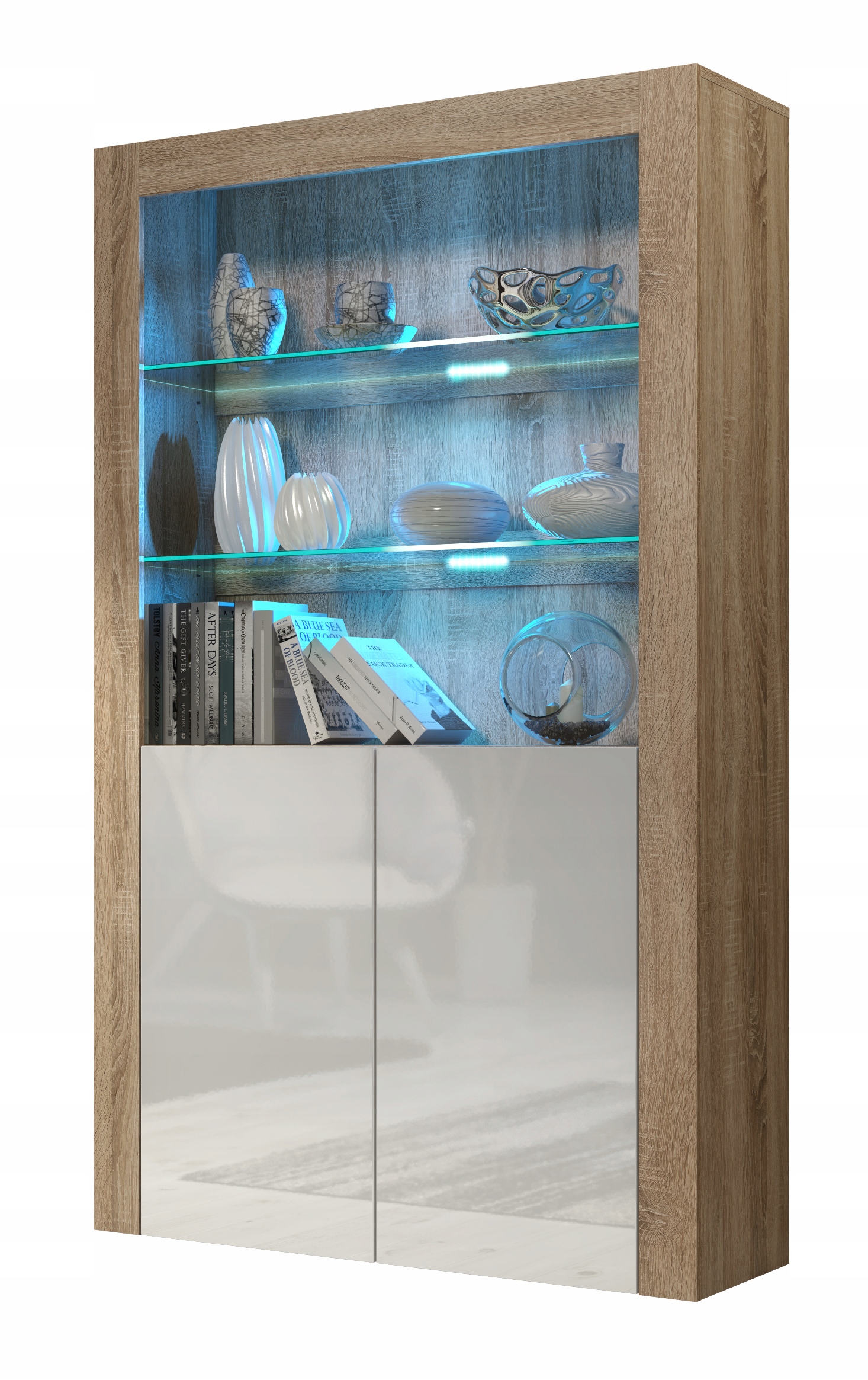 Оригинальная мебель, созданная для того, чтобы небольшое пространство пола, которое остается в нашем распоряжении, подходит как можно больше предметы, которые мы хотим всегда иметь под рукой. Он привносит в комнату шик и немного свежести. Позволяет обустроить пространство по высоте без необходимости сверления отверстий для подвесных шкафов. Он также может выступать в качестве сайта, на котором будут представлены важные для нас предметы, которых нет мы хотели бы потерять или уничтожить. Мебель имеет дверцу из глянцевого МДФ, а также открытое пространство, разделенное двумя стеклянными полками. Дверь открывается за система push to open. Открытые полки могут быть дополнительно освещены светодиодами, которые могут подчеркните важность нашей экспозиции (светодиодное освещение не входит в комплект). Все наша мебель доступна в нескольких цветовых вариантах, поэтому мы можем создавать из них однородные наборы или мебельные системы нескольких оттенков.