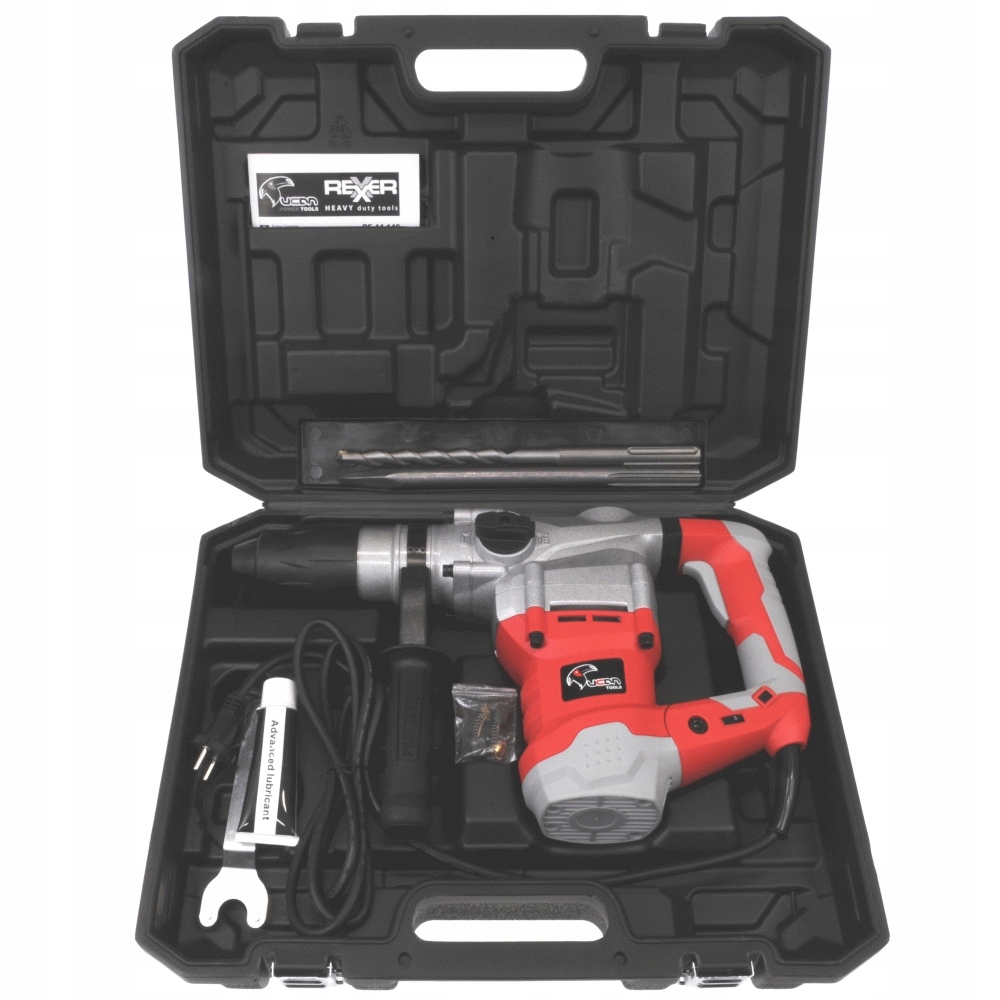 Młot udarowo-obrotowy przeznaczony do wiercenia z udarem w murze, betonie i kamieniu. Ergonomiczna rękojeść została wykonana z antypoślizgowego materiału ułatwiającego stabilną pracę narzędziem. Młot udarowo-obrotowy posiada 2 tryby pracy: wiercenie z udarem, kucie