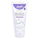 Krem przeciw odparzeniom Happy Sensitive to emolientowy kosmetyk przeznaczony dla dzieci już od 1. dnia życia. Krem wyróżnia bardzo prosty skład i skuteczne działanie. Bogata formuła składników aktywnych tworzy na powierzchni skóry oddychającą warstwę ochronną zabezpieczającą przed otarciami i odparzeniami związanymi z noszeniem pieluszki. Krem działa kojąco na podrażnioną skórę i łagodzi zaczerwienienia, przynosząc maluszkowi natychmiastowe poczucie ulgi.