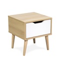 Stolik nocny SOFIE to nowoczesny, funkcjonalny i estetycznie wykończony mebel, który znajdzie swoje miejsce zarówno w pokoju dzieci, młodzieży jak i rodziców. Nowatorskie połączenie bieli z bukiem ozdobi każdy pokój od dziecięcego po dorosłego. Wyjatkowy styl podkreśli indywidualność każdego z Was, a funkcjonalność stolika pomoże w zorganizowaniu przyjaznego i eleganckiego pokoju.