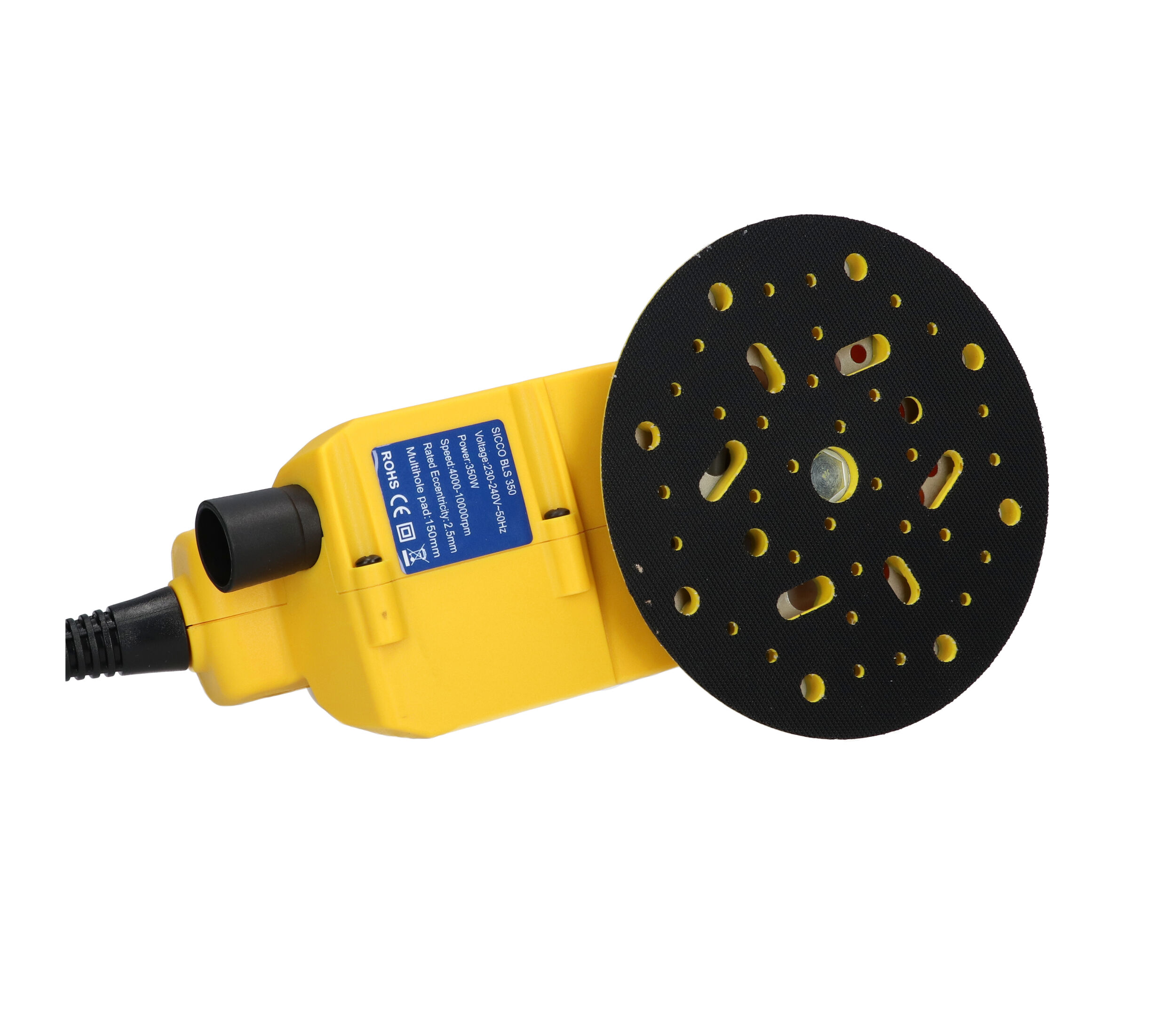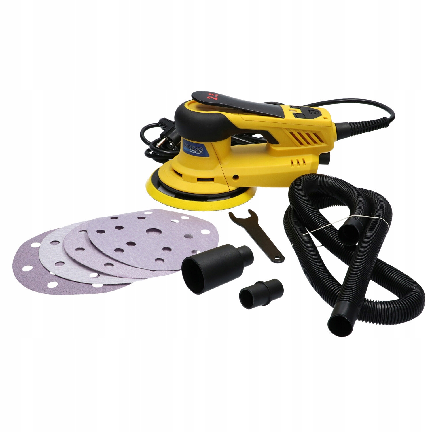 Mimośrodowa szlifierka elektryczna. Idealne rozwiązanie dla użytkowników ceniących wysoką wytrzymałość kulturę pracy, oraz ergonomię produktu, przystosowana jest do pracy z krążkami ściernymi 150 mm.
