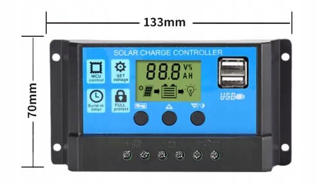 Regulator idealnie sprawdzi się przy panelach fotowoltaicznych 12V oraz 24V.