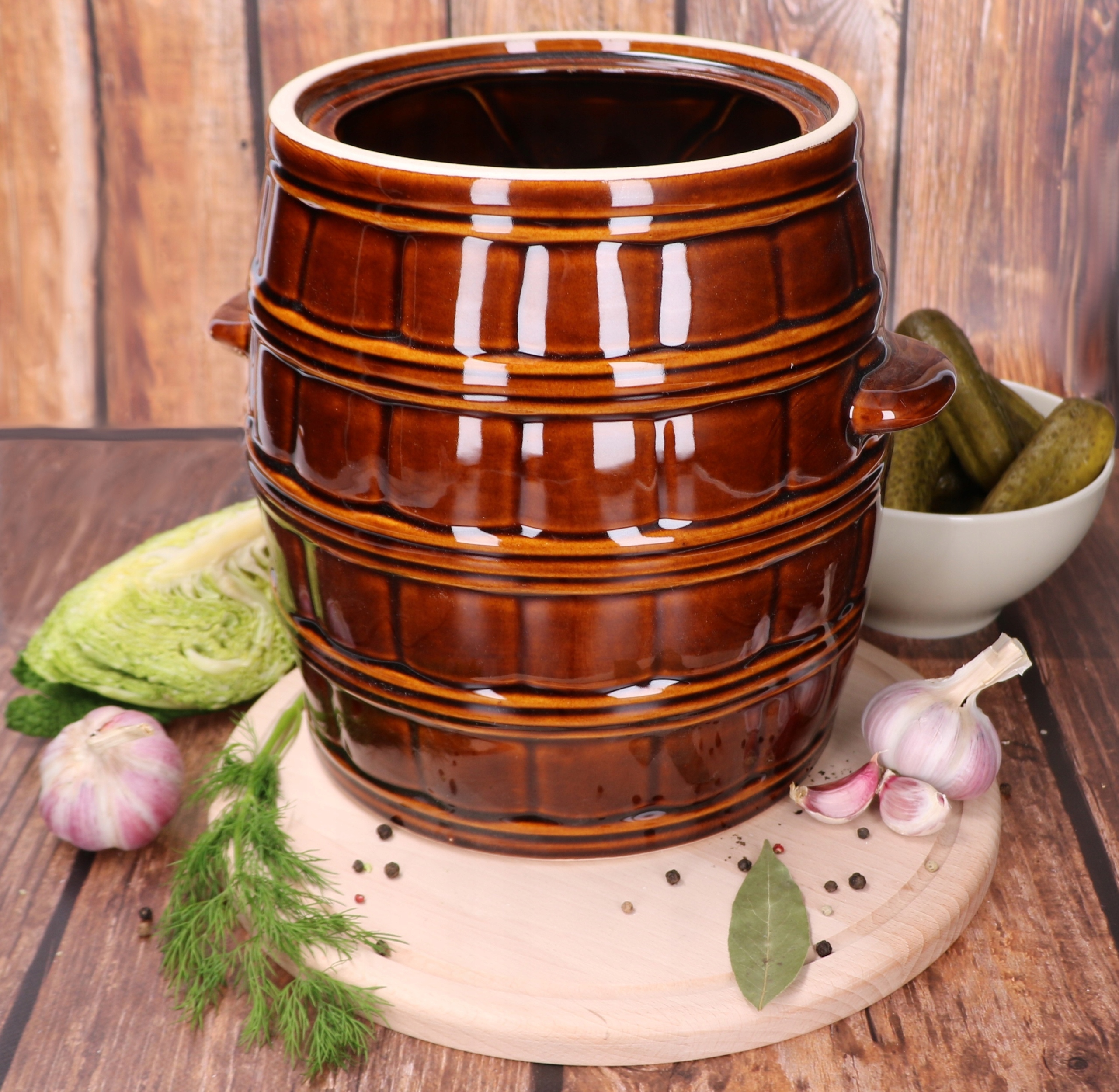 Многофункциональный посуда пригодится на любой кухне. Идеально подходит для внешний вид позволяет вписаться в большинство интерьеров не только домов, но и ресторанов. Бочка керамика устойчива к кислотам, поэтому она особенно подходит для приготовления маринованных огурцы, капуста или маринованные грибы.