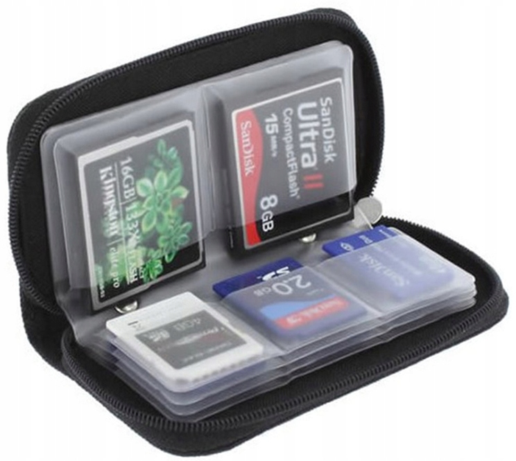 Pomieści 18 kart typu: SD / SDHC / MMC / xD / Sony Memory Stick Pro Duo / miniSD lub microSD z adapterem SD