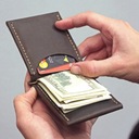 Wiele nowoczesnych portfeli zajmuje dużo miejsca. Są niewygodne w noszeniu, odciągają kieszenie. Kompaktowym rozwiązaniem może być skórzany klips na banknoty z przegródkami na karty plastikowe lub tak zwany front pocket wallet. Mamy przyjemność zaprezentować ręcznie robiony skórzany portfel z klipsem na pieniądze papierowe oraz czterema kieszonkami na karty bankowe lub dokumenty.