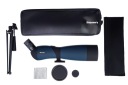 Z uwagi na duże powiększenie przyrządu podczas obserwacji zaleca się używanie statywu. Jest dostarczany w zestawie i gwarantuje najbardziej stabilny obraz. Statyw można regulować za pomocą wygodnego pokrętła. Zestaw zawiera mały statyw stołowy i futerał z tworzywa sztucznego do przechowywania i transportu przyrządu wraz z akcesoriami.
