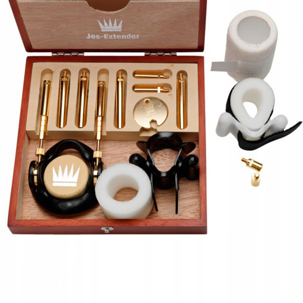 Jes Extender Gold Penis Enlarger to system trakcyjny do powiększania penisa. Jeśli szukasz skutecznego i w pełni bezpiecznego zestawu, który przyczyni się do wyeliminowania Twoich intymnych problemów i kompleksów, to ta propozycja na pewno Ciebie usatysfakcjonuje. Akcesoria wchodzące w skład kompletu zostały starannie wybrane. Na uwagę zasługuje również jakość wykonania i wzornictwo. Wszystkie elementy zostały wykonane z 24 karatowego złota. Takie gadżety przyciągają spojrzenia i zachęcają do zabawy. Całość została zapakowana w eleganckie, mahoniowe etui, gwarantujące pełną dyskrecję.