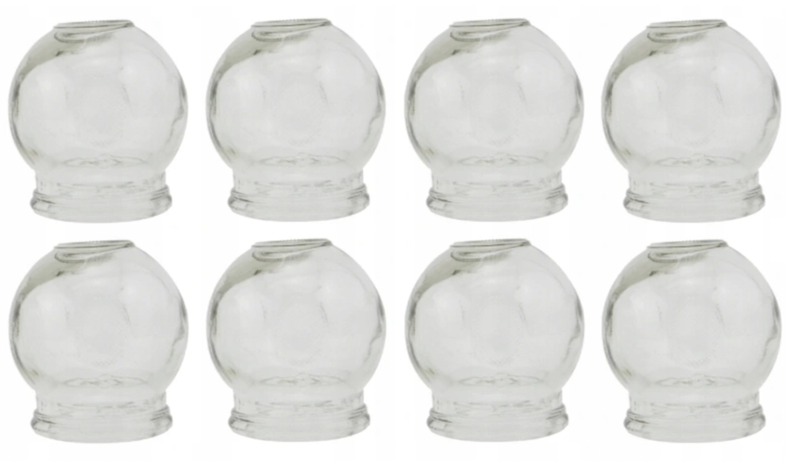 Szklane bańki o zaokrąglonych krawędziach, nie kaleczą, dobrze przylegają do ciała.
