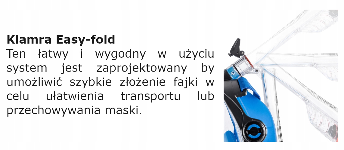 Klamra Easy-fold - Ten łatwy i wygodny w użyciu system jest zaprojektowany by umożliwić szybkie złożenie fajki w celu ułatwienia transportu lub przechowywania maski.