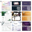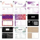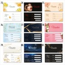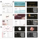 Najpierw wybierz wzór, następnie na pierwszej stronie zamieść swoje logo + tekst. Na drugiej stronie masz możliwość modyfikacji pól na pieczątki (ilość, kształt, kolor) oraz zmianę ikonek (telefon, kontakt, lokalizacja, strona www, social media).