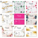 Najpierw wybierz wzór, następnie na pierwszej stronie zamieść np. swoje logo + tekst. Na drugiej stronie masz możliwość modyfikacji pól oraz zmianę tekstu (data, telefon, kontakt, lokalizacja, strona www, social media).