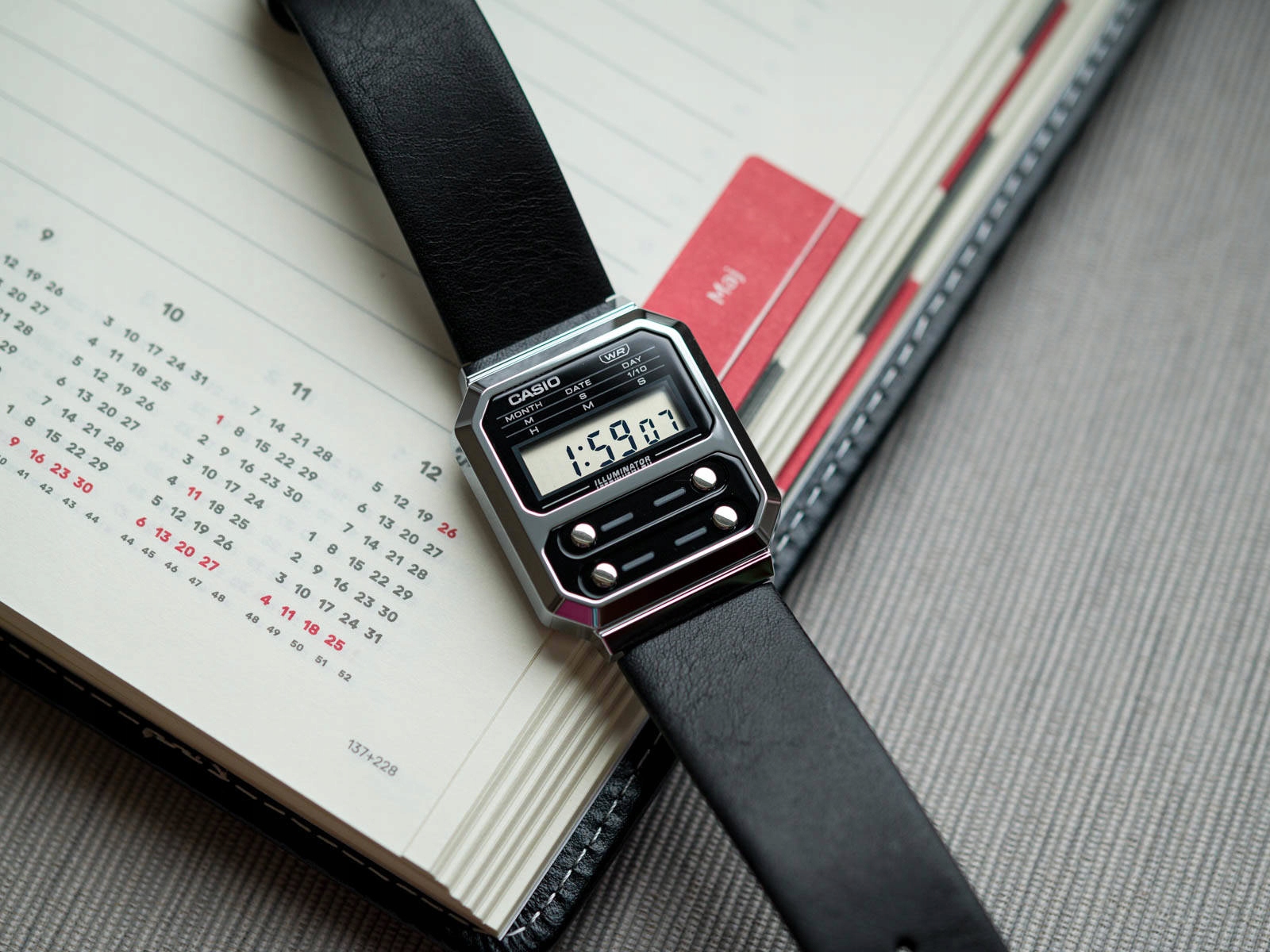 Tarcza podświetlana jest diodą LED w kolorze pomarańczowym, co pomaga w odczycie godziny po zmroku.