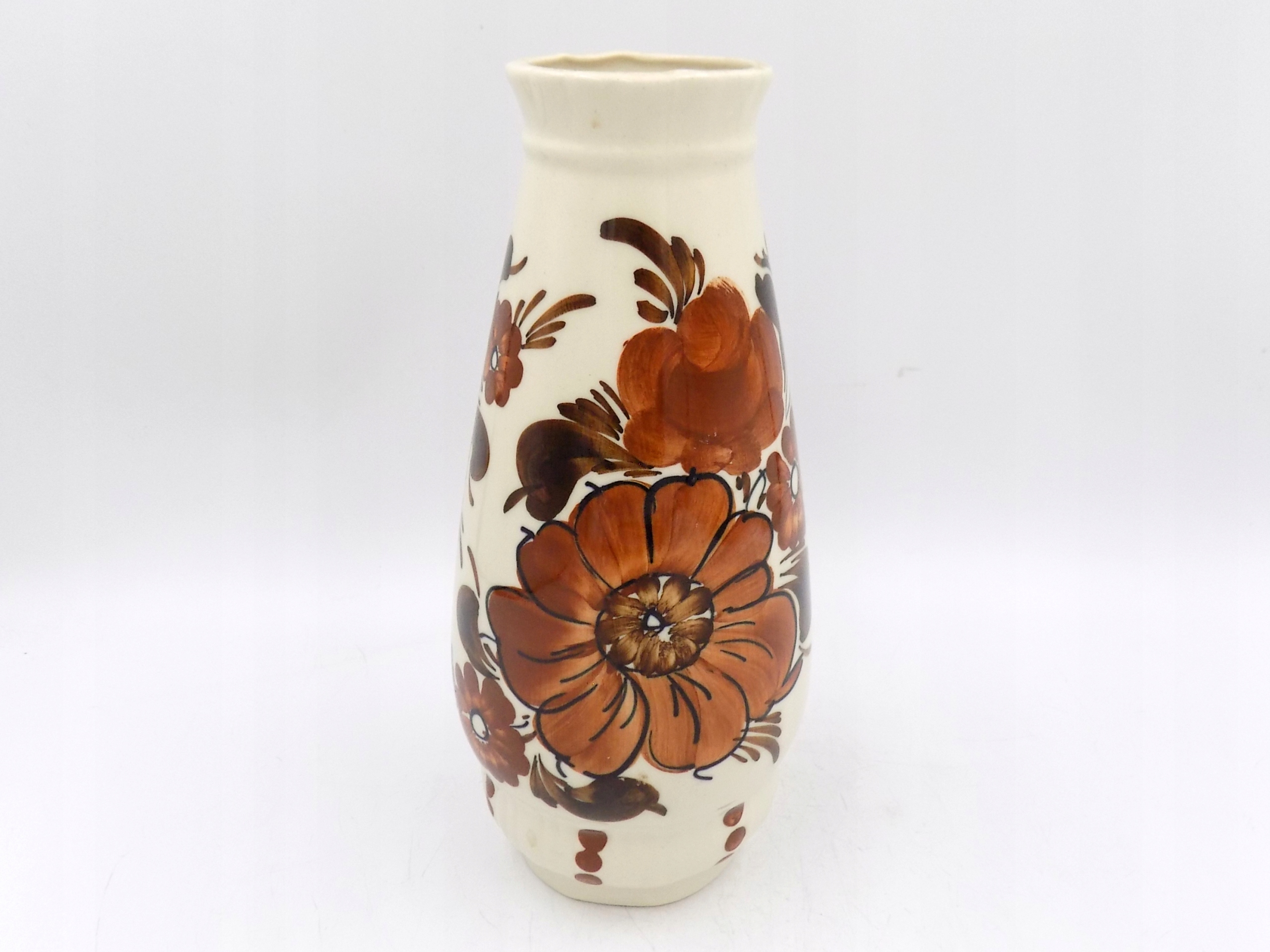 Fajansowy wazon z Włocławka z lat 70/80-tych. Sygnowany. Ręcznie malowany. Wymiary; wys. 20 x 9 cm.