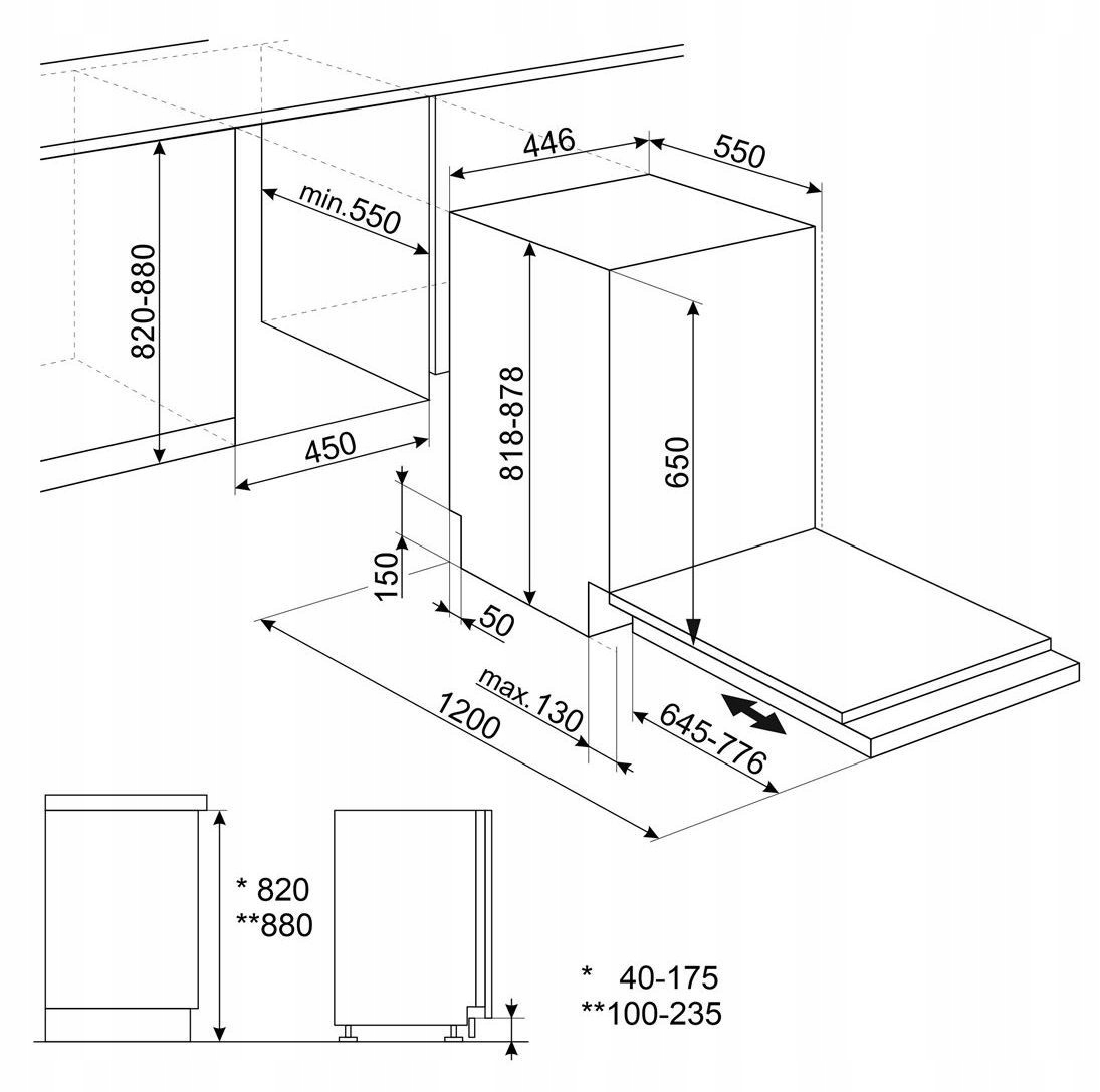 Regulowane nóżki 6 cm, od 820 do 880 mm