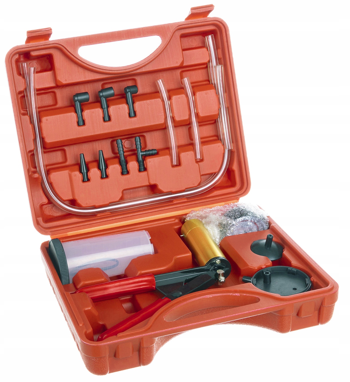 Ręczna pompa ciśnieniowa, próżniowa jest to urządzenie o dużej ilości zastosowania. Wytwarza podciśnienie do -1 BAR. Służy do sprawdzenia systemów samochodowych, których działanie opiera się na podciśnieniu. Zestaw pozwala na diagnozowanie wszystkich silników spalinowych Diesla oraz benzyny w praktycznie każdym silniku, czy też układzie.