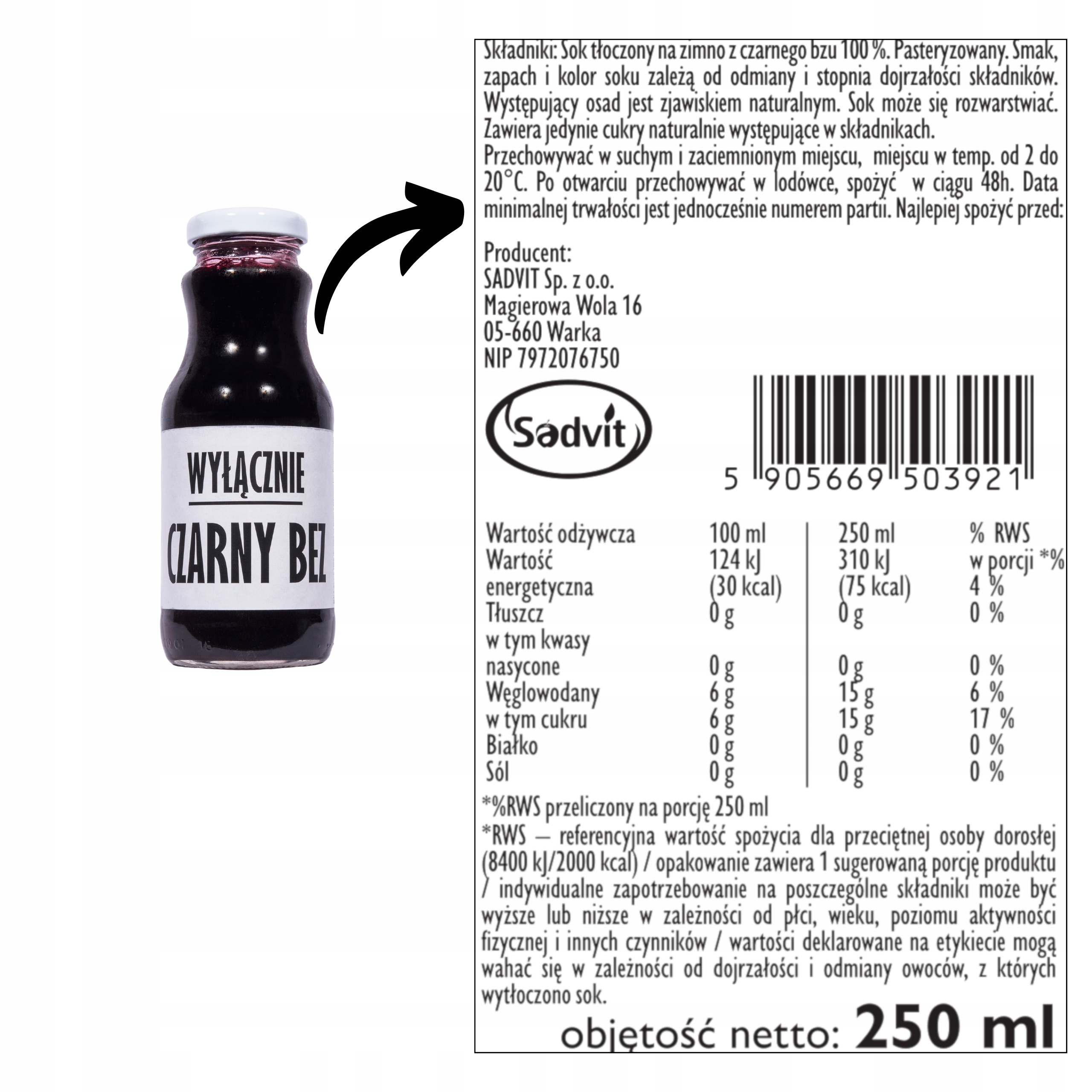 Сок бузины холодного отжима 100%. Пастеризованный.