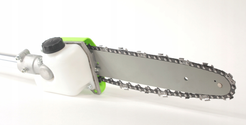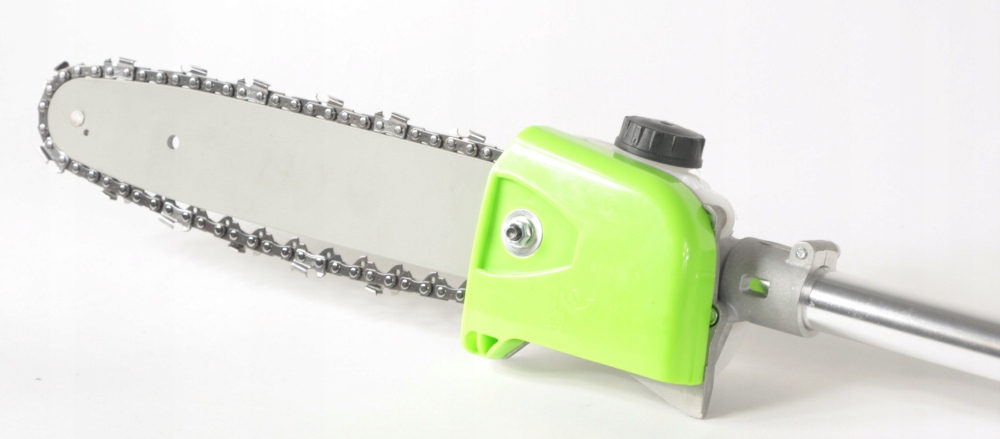 Przystawka do podkaszarki z piłą łańcuchową do cięcia gałęzi, krzewów, przycinania żywopłotów i wielu innych prac ogrodniczych.