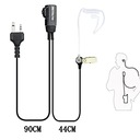 Przewód tego zestawu słuchawkowego wykonany jest z materiału PU, trwały do długotrwałego użytkowania. Kabel jest wystarczająco długi, bardzo wygodny w użyciu. Tylne klipsy pozwalają na przypięcie go do ciała. Przezroczysta tuba łącząca pałąk douszny może sprawić, że dźwięk rozprzestrzenia się wyraźniej, a także utrzymuje rozmowy w prywatności.