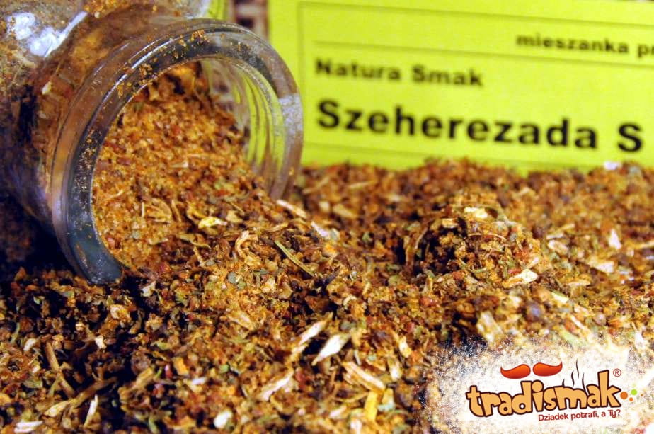1 szt. Dobry Smak Szeherezada S a 40 g - Bardzo smaczna kompozycja przypraw grubo zmielonych z solą do mięs pieczonych na rożnie i na patelni a także do boczku pieczonego, golonki, kurczaków, gulaszu, steków, kotletów i innych mięs