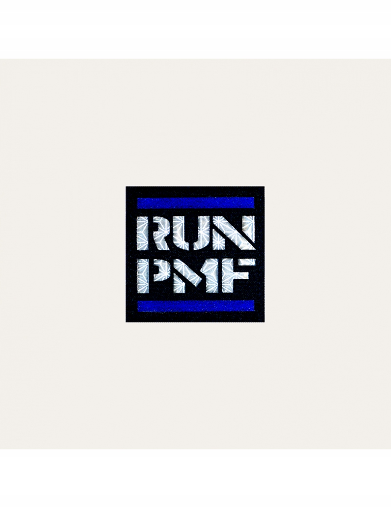Нашивка PMF - ” RUN PMF", выполненная на липучке. 60 мм x 60 мм со светоотражающей надписью.