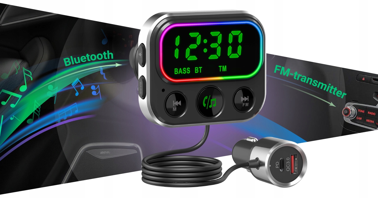 С помощью FM-передатчика вы решаете, какую музыку вы хотите слушать в машину. Если ваше радио не оснащено Bluetooth, вам просто нужно подключить телефон сотовый телефон к передатчику: устройство подключается через радио, позволяя вам играть в избранное треков.
