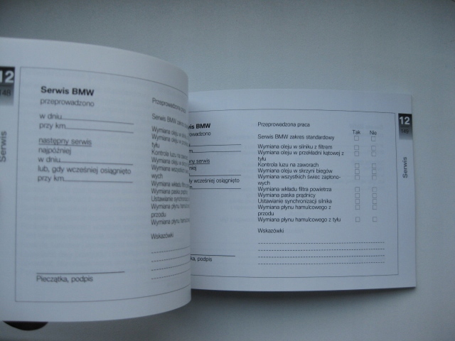 Książeczka zawiera również rubryki serwisowe (do prowadzenia historii serwisowej przeglądów), które wszystkie są czyste, niewypełnione !