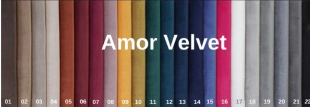 AMOR VELVET - gęsta tkanina meblowa typu welur, niezwykle miękka i aksamitna w dotyku. Tkanina tapicerska bardzo odporna na ścieranie. Kolor jednakowy z obu stron. Idealna do stosowania na meblach, dekoracjach oraz na zasłony, kotary. Nie zawiera barwników azowych.Tkanina AMOR posiada apreturę utrudniającą wchłanianie płynów uniclean.