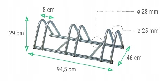 Сварной и оцинкованная подставка для 3 велосипедов, изготовлен из труб верхних трубы основания диаметром 28 мм.